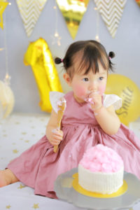 初めて見る可愛いケーキにとまどいながらも手づかみでパクパク食べてくれる姿に
